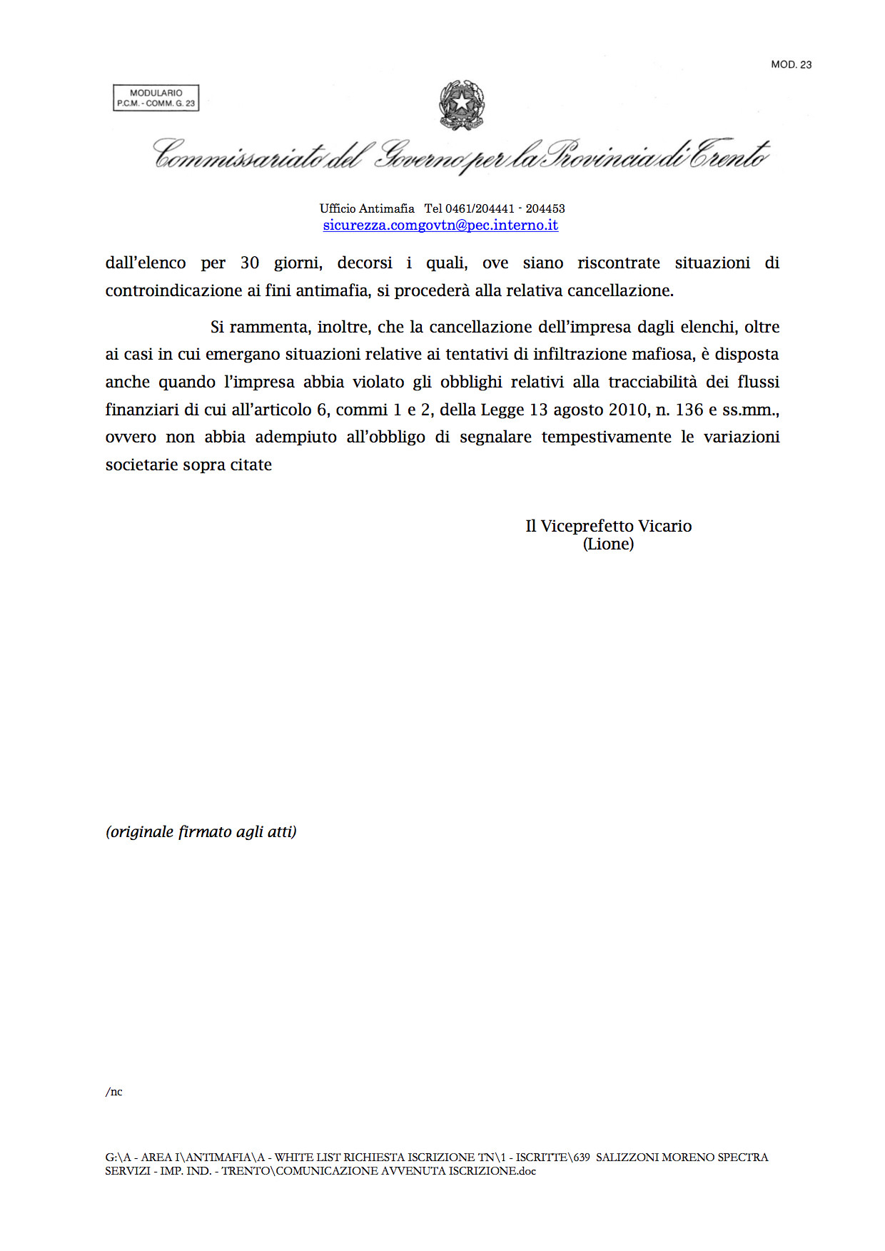 2COMUNICAZIONE AVVENUTA ISCRIZIONE white list antimafia Publicato 30 Maggio 2017 alle 1240 × 1753 li NEWS ← Precedente Successivo → Mi piace Caricamento...